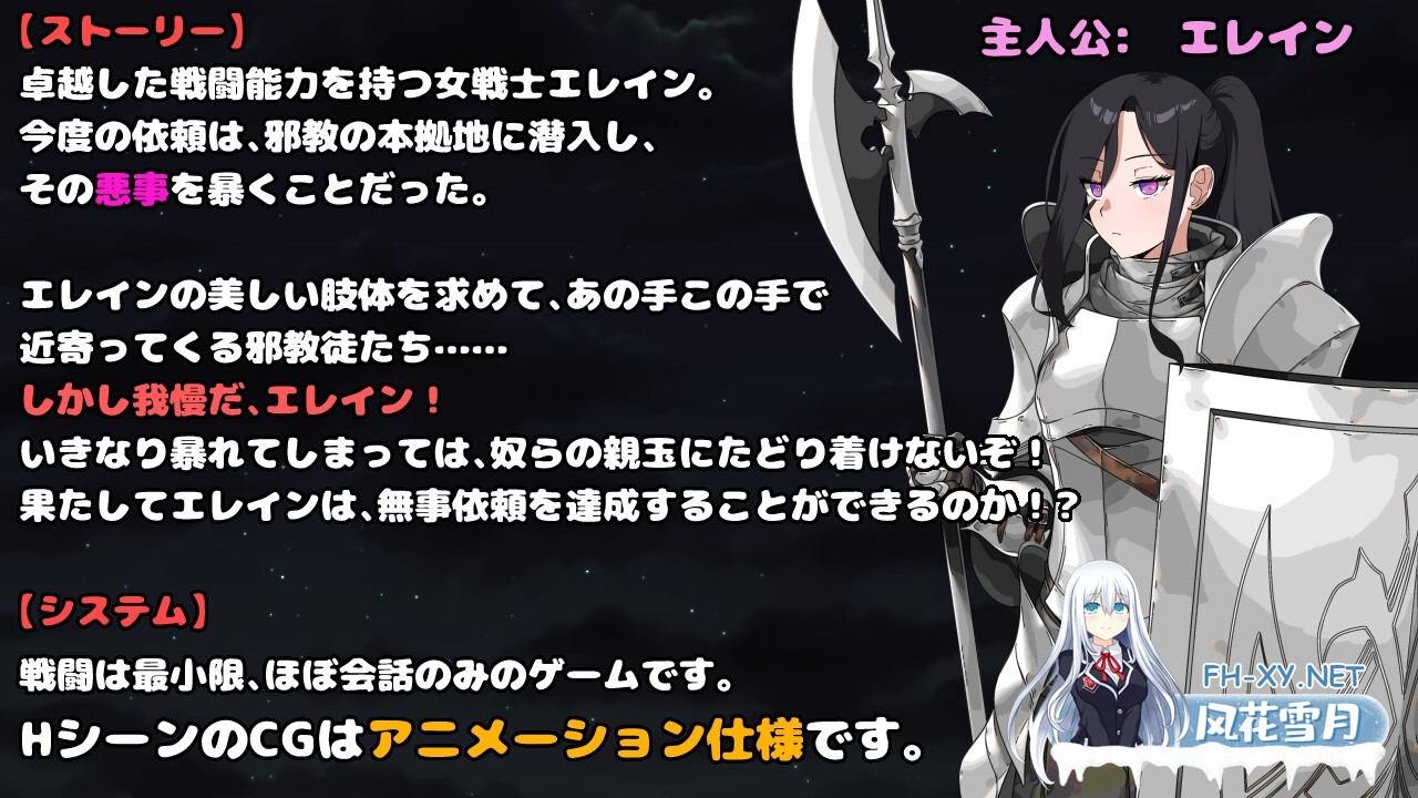 [故事] 拥有卓越战斗能力的女战士艾琳。 这次的委托是潜入邪教的根据地,揭露他们的恶行。 邪教徒们为了得到艾琳 ...